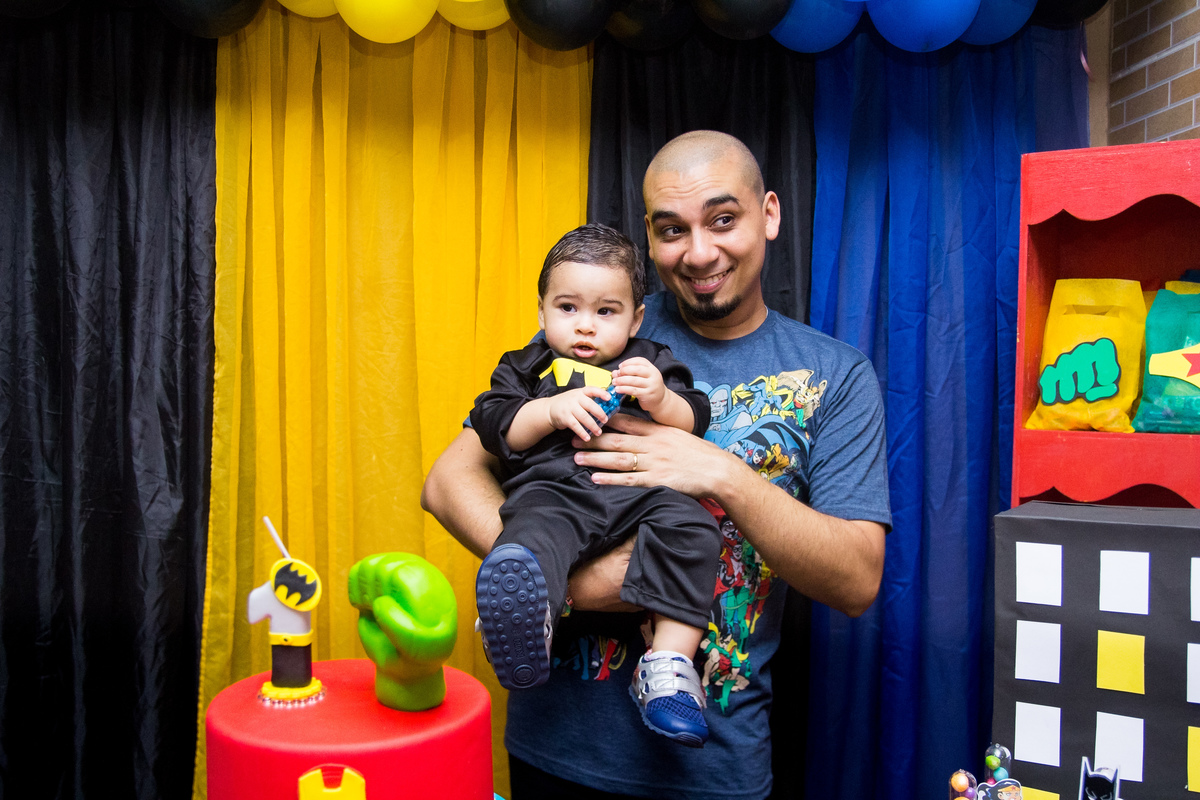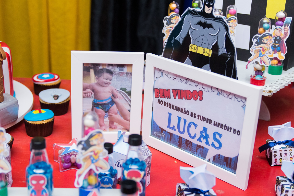 Já pensou em fazer festa em casa? E quem foi que disse que uma festa em casa precisa ser simples, ela pode ter tudo o que uma festa em um Buffet tem e um pouco mais. Olha só que festa legal os pais do Lucas fizeram pra comemorar seu primeiro ano de vida. O pai é superfã dos Vingadores da Marvel, que hoje pertence a Disney e da Liga da Justiça da DC Comics.