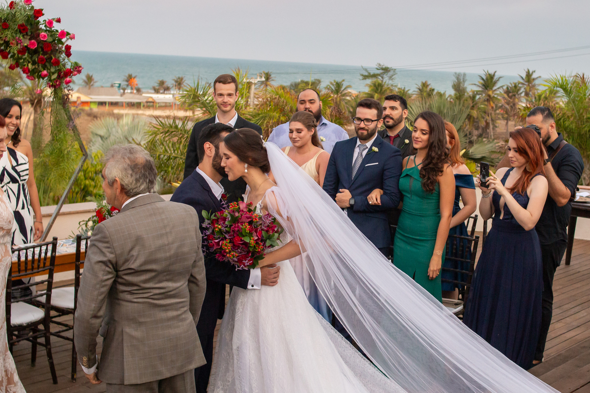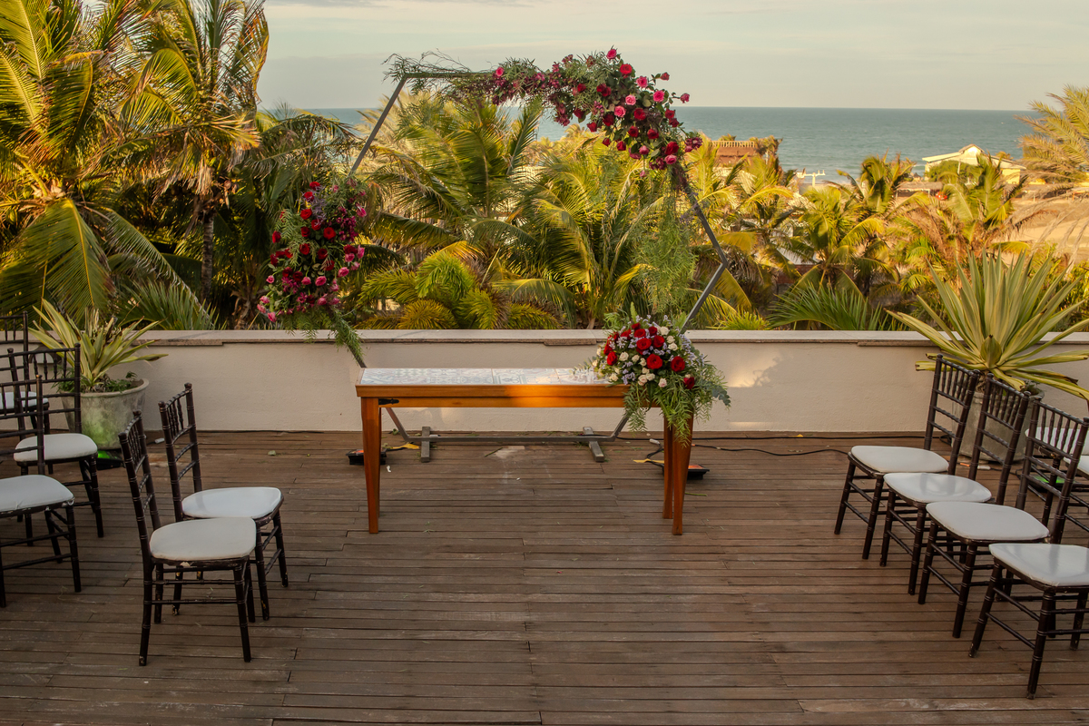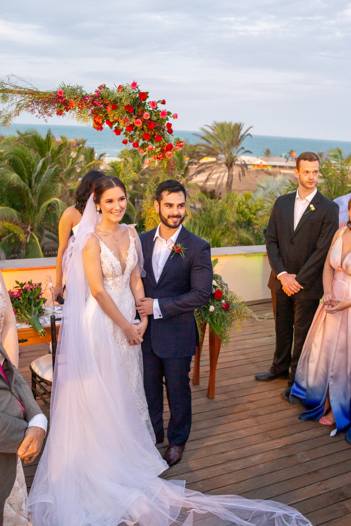 O dia mais incrível da vida desse lindo casal aconteceu numa casa de eventos localizada na Praia do Japão em Aquiraz, um pouco afastado da praia, mas com aquela vista do mar incrível.