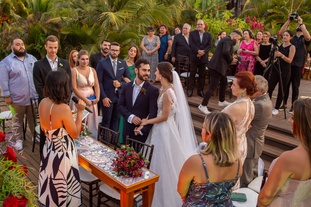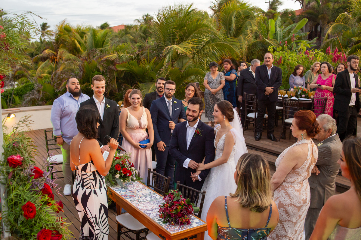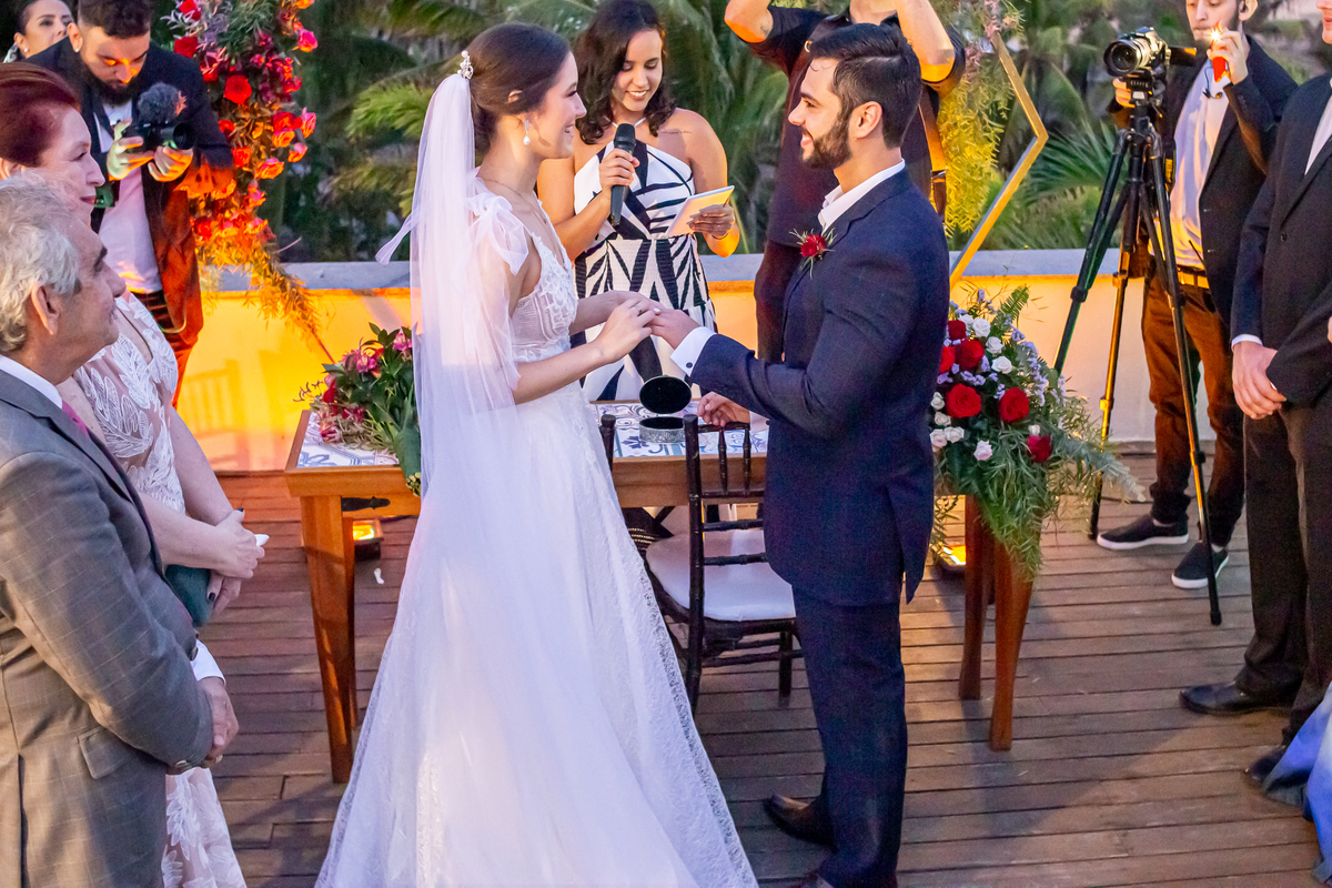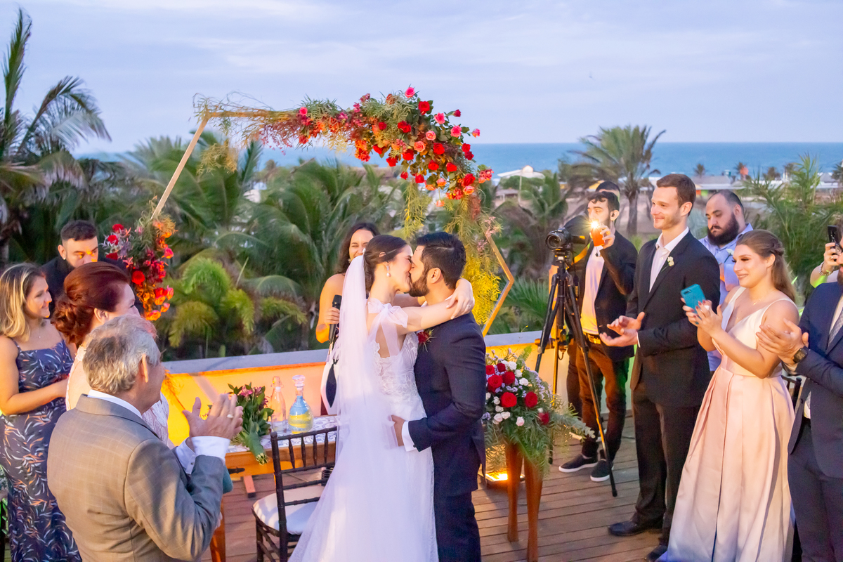 O dia mais incrível da vida desse lindo casal aconteceu numa casa de eventos localizada na Praia do Japão em Aquiraz, um pouco afastado da praia, mas com aquela vista do mar incrível.